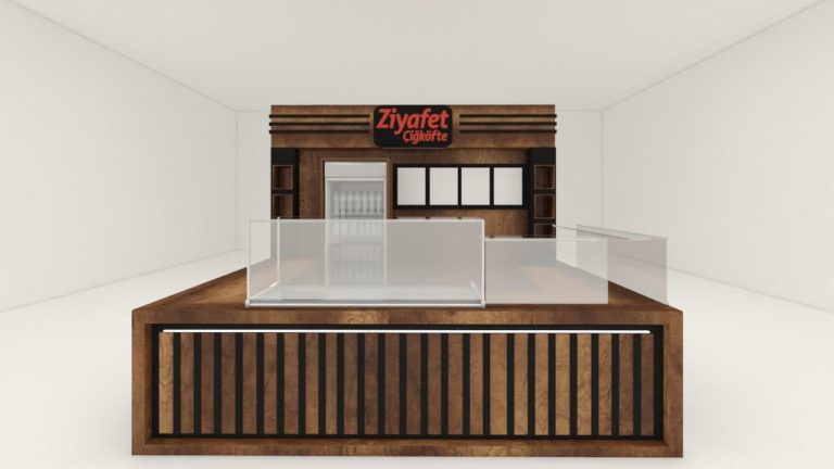 - Şık ve Fonksiyonel Tasarım: Ziyafet Çiğköfte standları, markanın kurumsal kimliğini yansıtan sade, modern ve davetkâr bir görünüme sahiptir. Ahşap detaylar, parlak logolar ve cam bölmeler ile ürünlerin tazeliği vurgulanır.