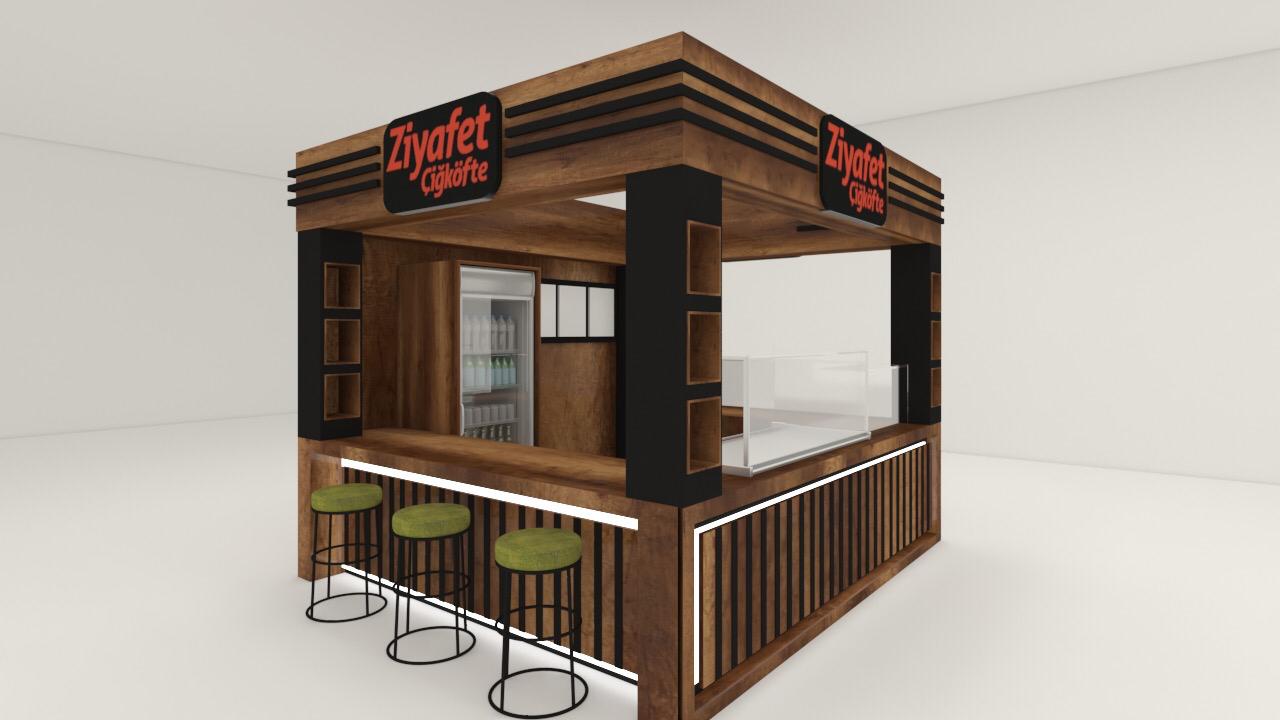 - Şık ve Fonksiyonel Tasarım: Ziyafet Çiğköfte standları, markanın kurumsal kimliğini yansıtan sade, modern ve davetkâr bir görünüme sahiptir. Ahşap detaylar, parlak logolar ve cam bölmeler ile ürünlerin tazeliği vurgulanır.